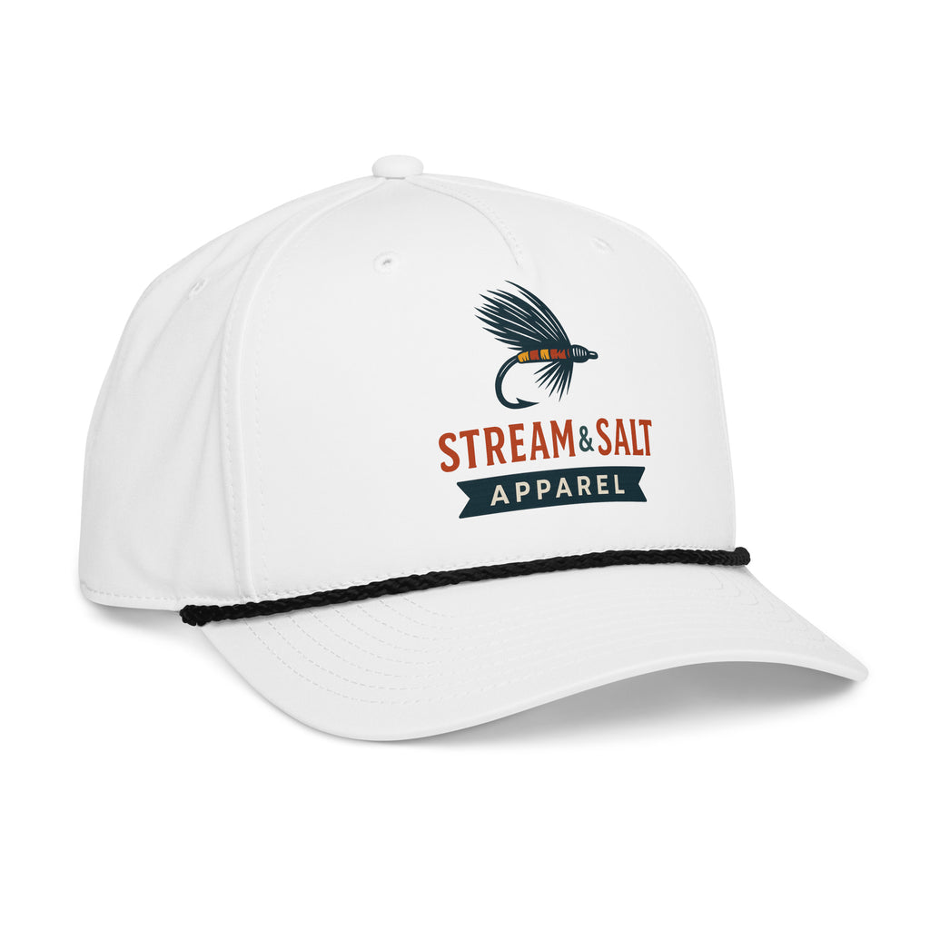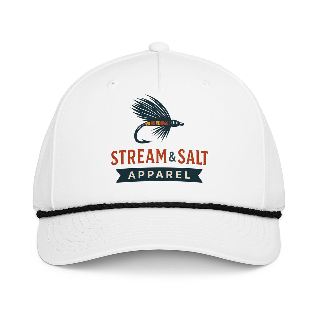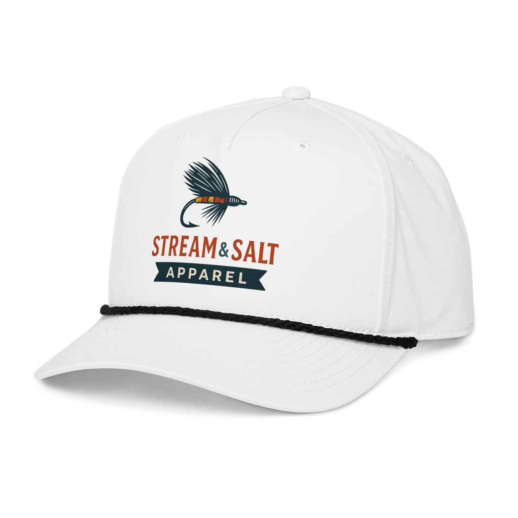 The hat that started it all. Our Classic Logo Rope Hat blends vintage coastal style with modern comfort, making it a go-to for both fresh and saltwater days. Featuring a high-profile crown, structured front panel, and retro rope detail across the brim, this cap proudly carries the Stream & Salt logo — a mark of anglers who celebrate wild waters from mountain streams to open seas.